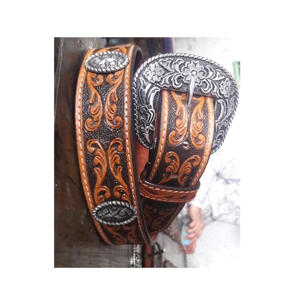 Premium Unisex Floral Tooled Leather Belts Customized Durable Beaded Belts with Floral Design Buckles Wholesale Horse Products