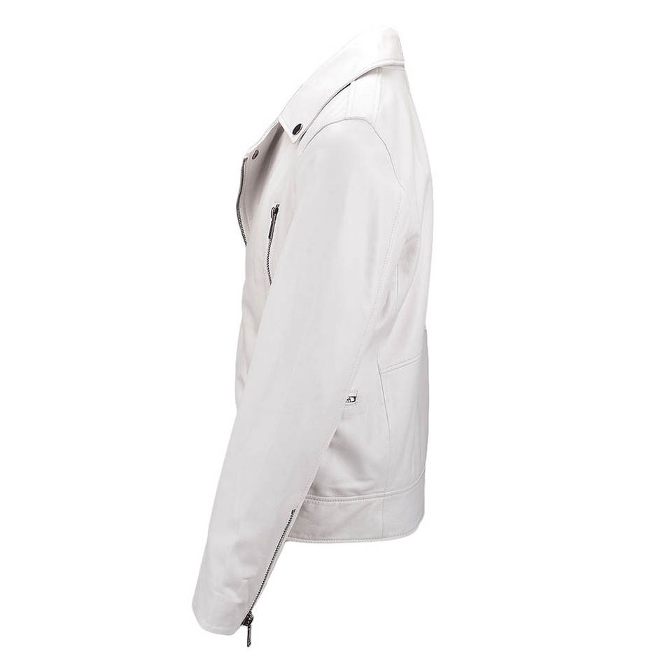 Premium Vegetable Tanned Leather Biker Jacket in White - Stylish Design for Men's Fashion Statement