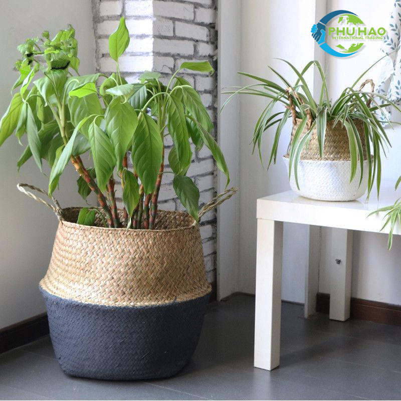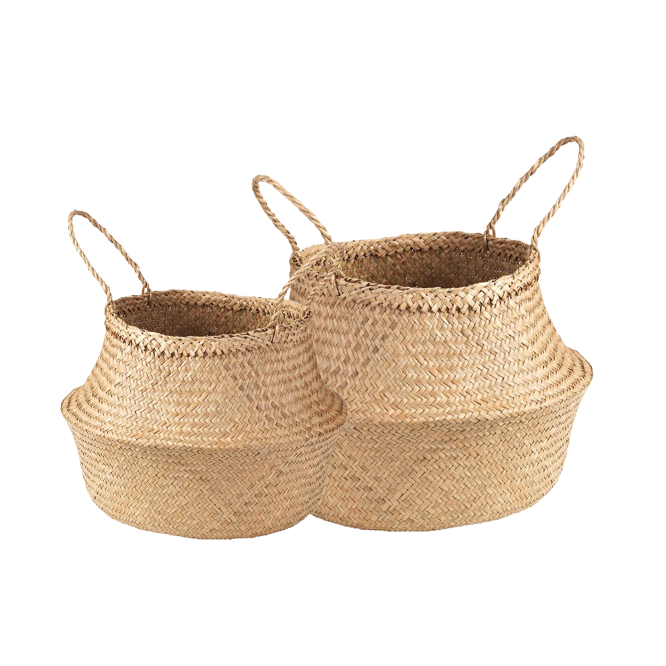 Premium Versatile Natural SEAGRASS BELLY BASKETS with Handles Eco-Friendly Storage for Fruits, Toys, Clothing Laundry Organizer
