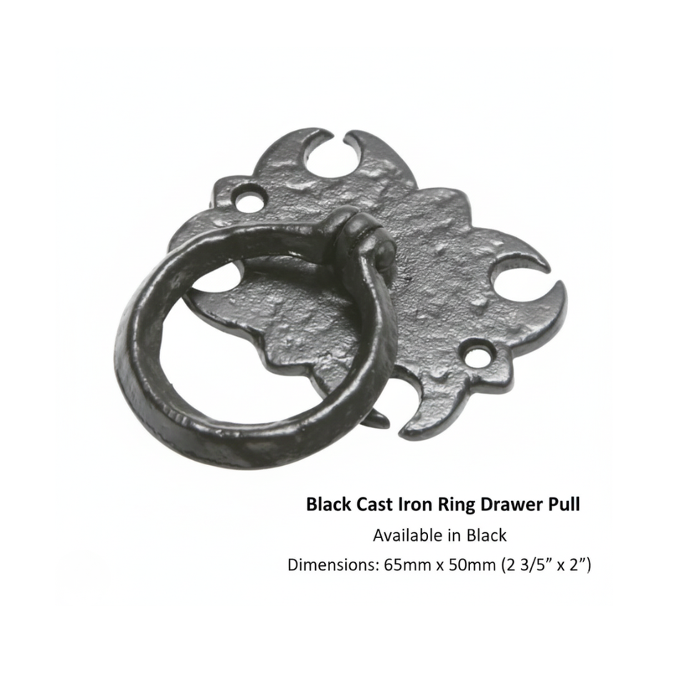 Premium Vintage Decorative Iron Ring Pull Handle Black Powder-Coated for Dresser Cabinet Wardrobe Drawer Furniture Hardware