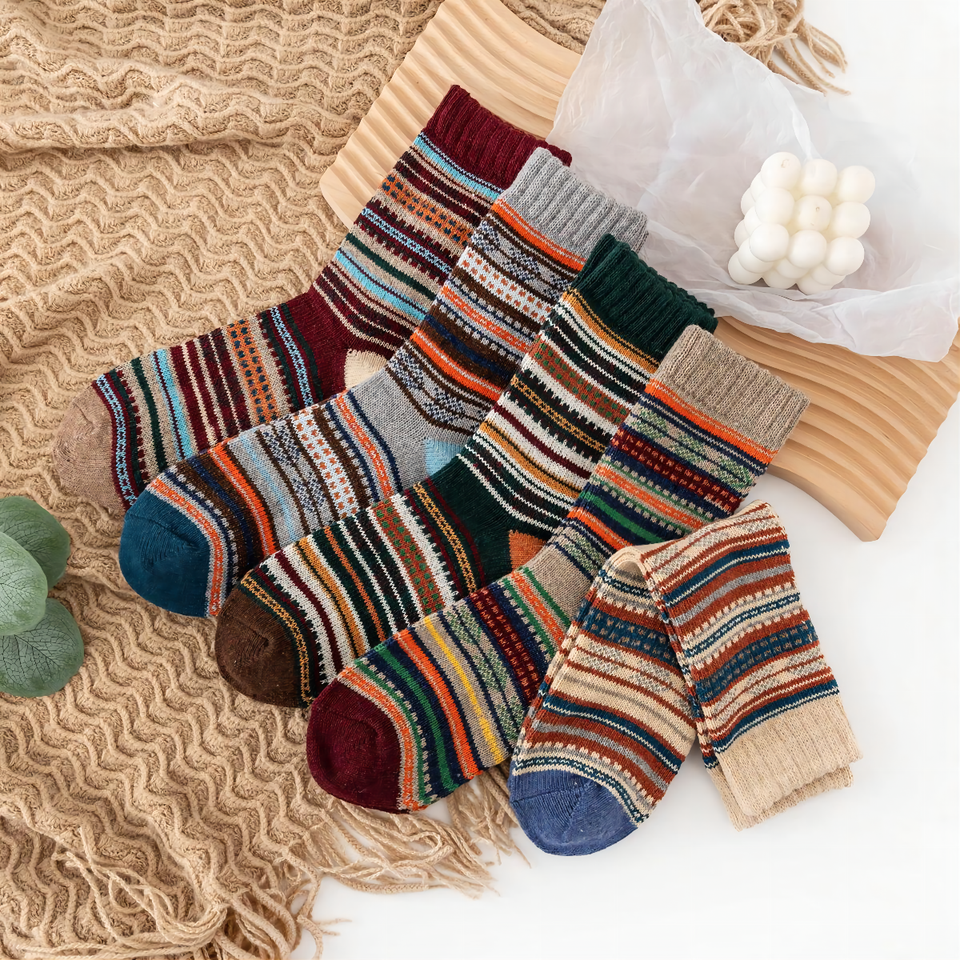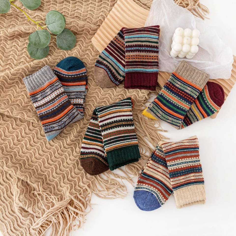 Premium Vintage Knitted Wool Winter Socks Thick Thermal Warm Cozy Socks for Women Retro Stylish Multicolor Design