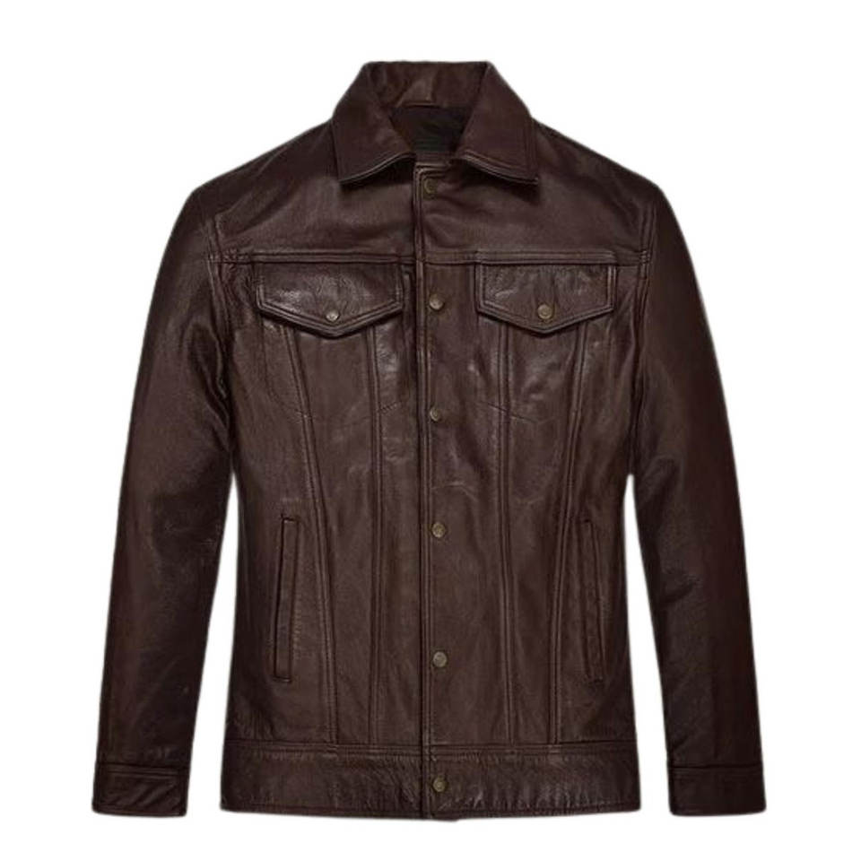 Premium Vintage Men's Leather Shirt New Arrival High Quality Breathable Full Sleeve Winter Customizable with Stand Collar
