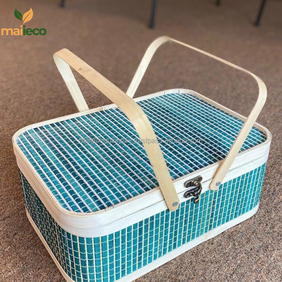 Descriptions:Handwoven Rectangle Bamboo Picnic Basket