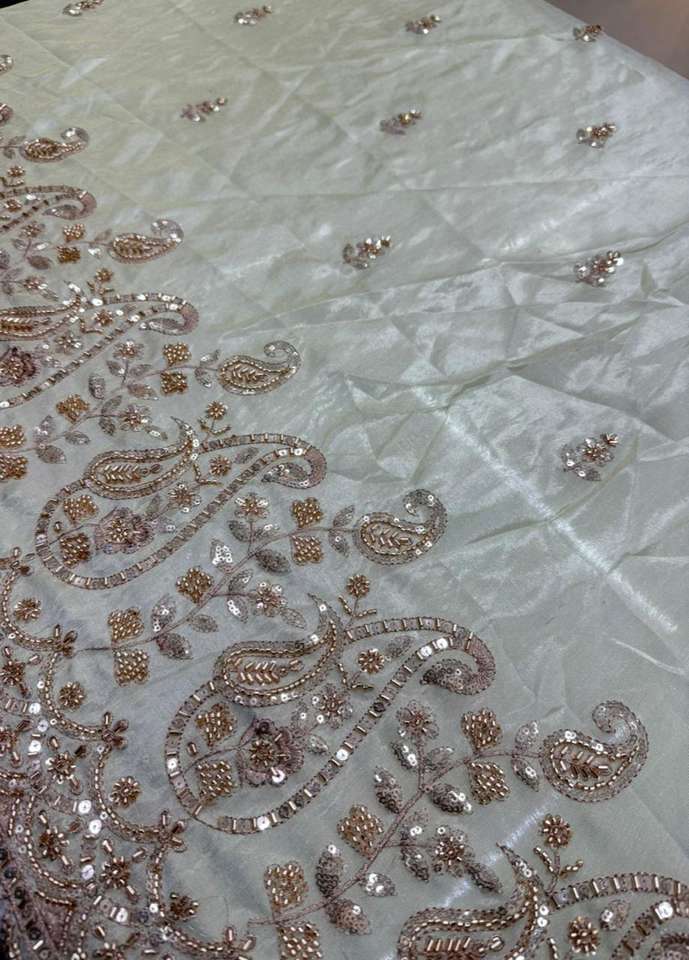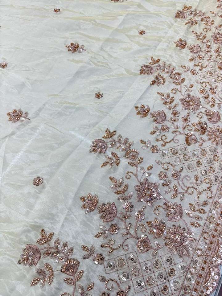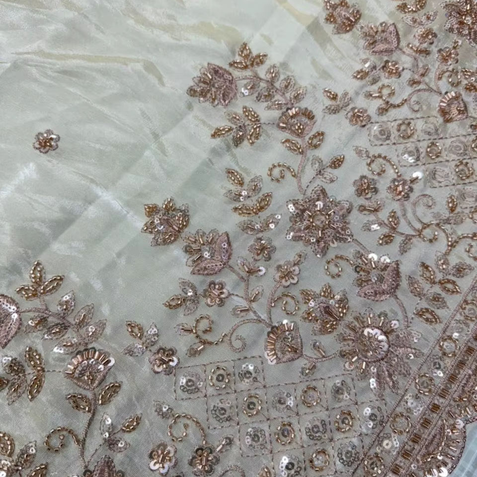 Premium Viscose Simmer Tissue Daman Multi Thread and Original Beads Flower Embroidery Beautiful work
