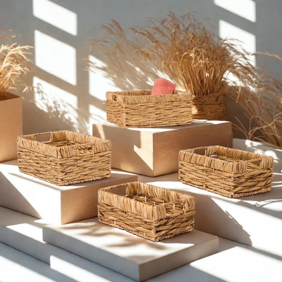 Premium Rectangle Vintage Water Hyacinth Handcrafted Eco-Friendly Storage Basket for Home Organization