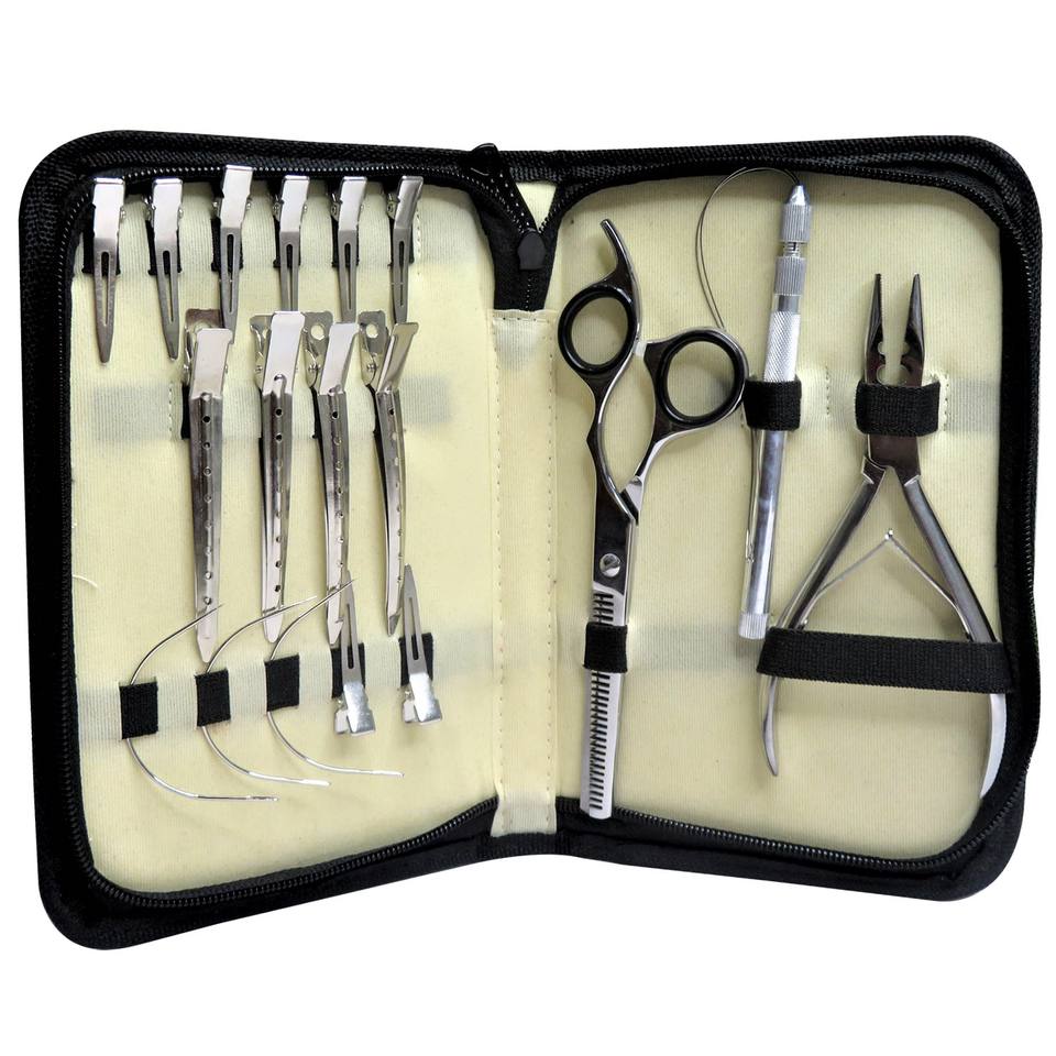 Premium Weft Extension Tool Kit Including Curved Needles High-Strength Nylon Thread C-Curve Needle Stainless Steel Small Clips