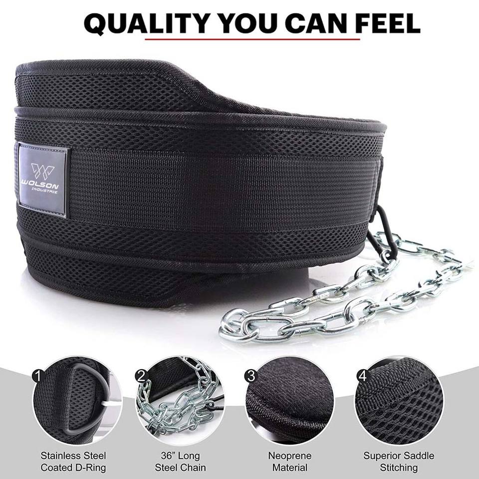 Premium Weight Lifting Double Dip Belt With Chain for Pullups Powerlifting Comfortable Neoprene Waist Support Cross Fit Training