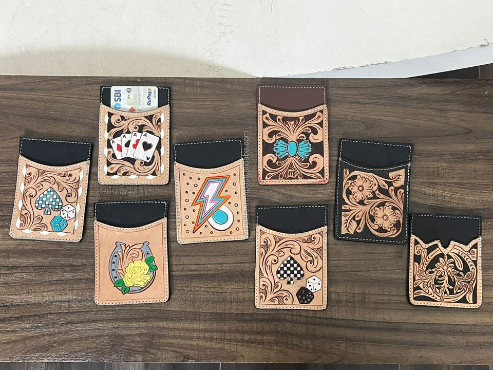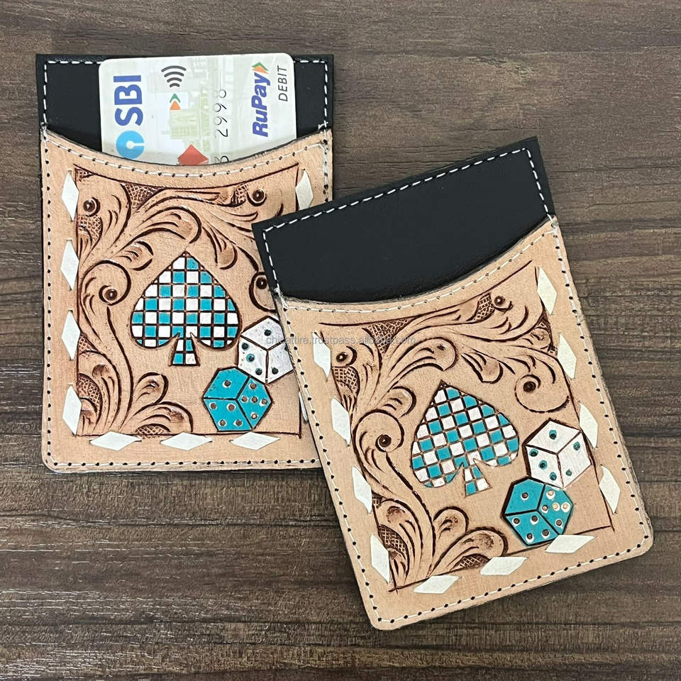 Product name:Hand Tooled Checkered Design Credit Card Holder Wallet