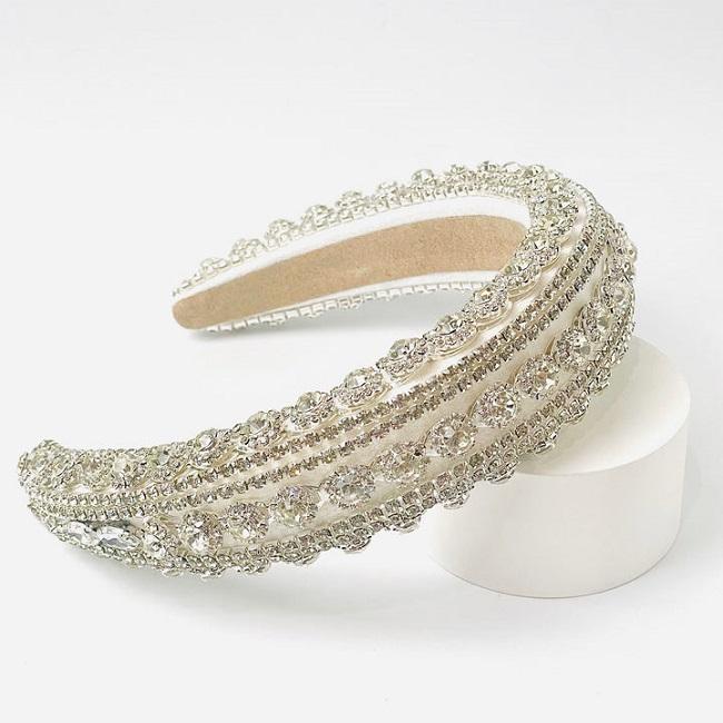 Premium White Colored Fashionable Wide Beaded Headband Made With Seed Beads In Intricate Patterns That Elevate Any Look