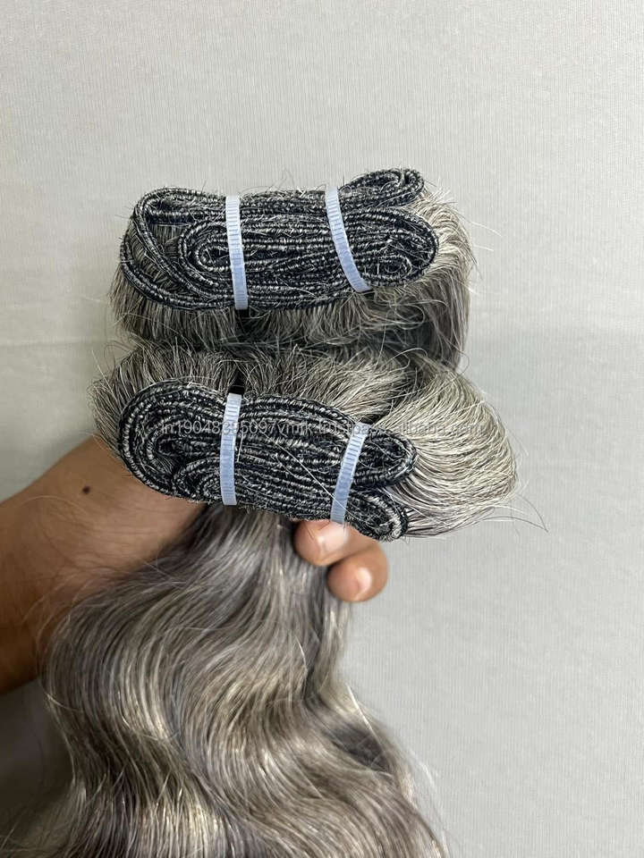 Premium White Grey Hair Wefts 100% Human Hair Soft Silky & Tangle-Free Ideal for Bold Styles Highlights & Full Coverage Looks