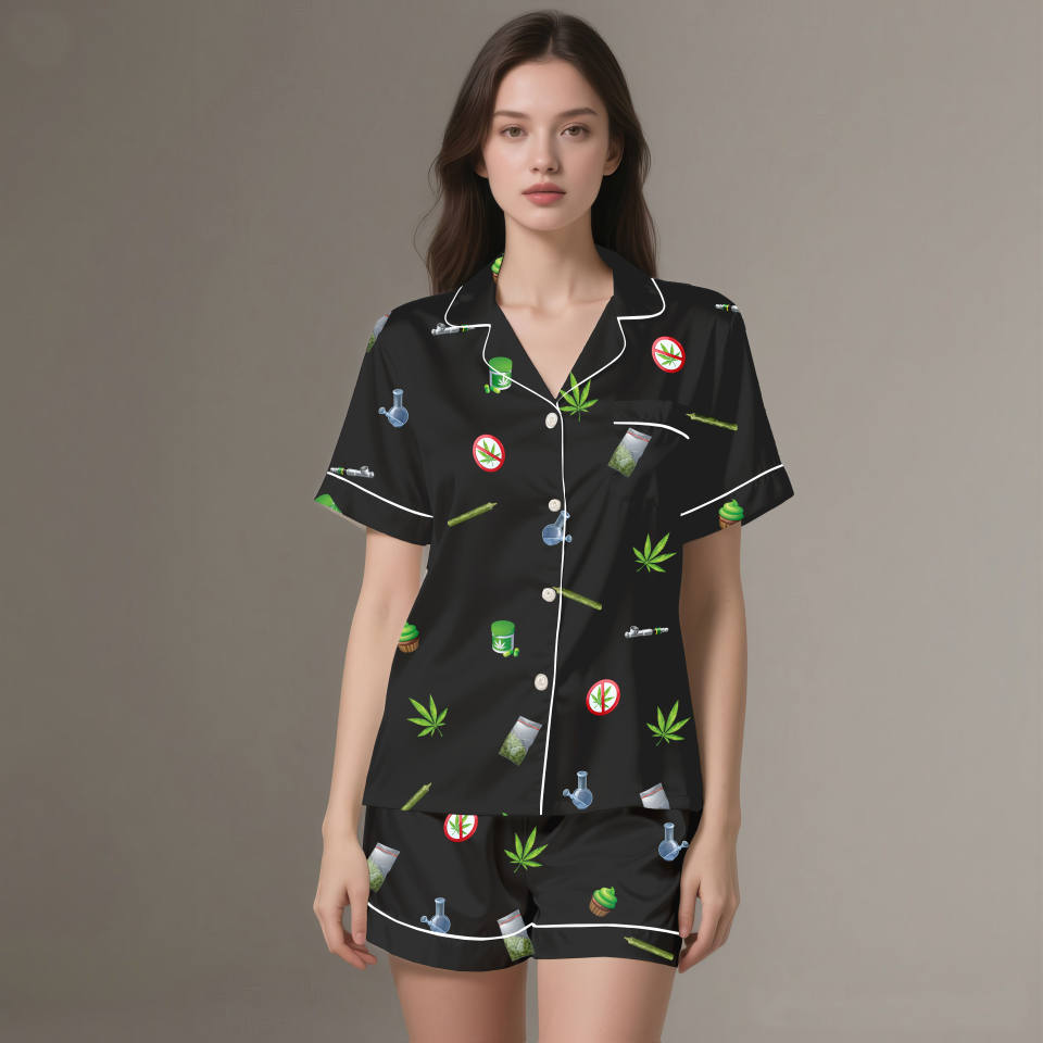Premium Women Satin Pajama OEM ODM | Lightweight Silk Short Sleeve Button Sleepwear Breathable Summer Autumn Spring