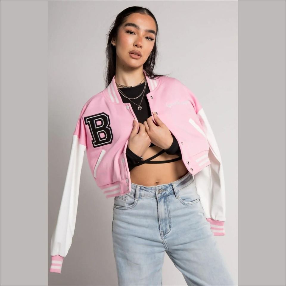 Premium Women Varsity Jacket Elegant Baseball Bomber Outerwear Stylish Letterman Jacket Trendy Fashion Streetwear