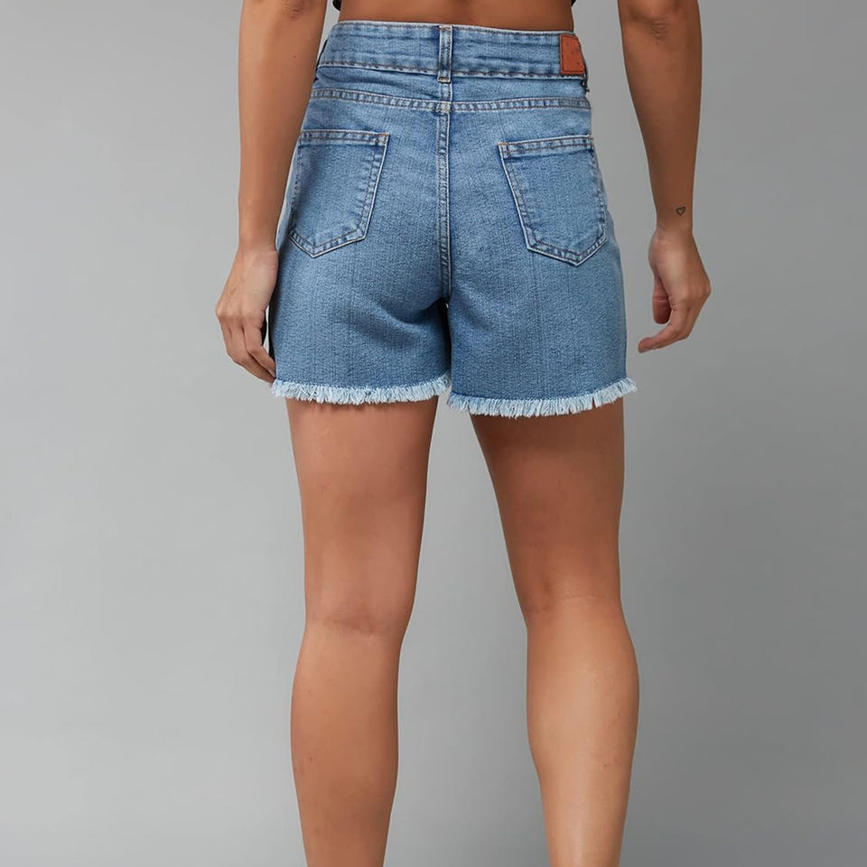Premium Women's 3D Pockets Denim Shorts Breathable Mid Waist Hip Hop Casual Shorts Custom Logo Plus Size High Street Knitted
