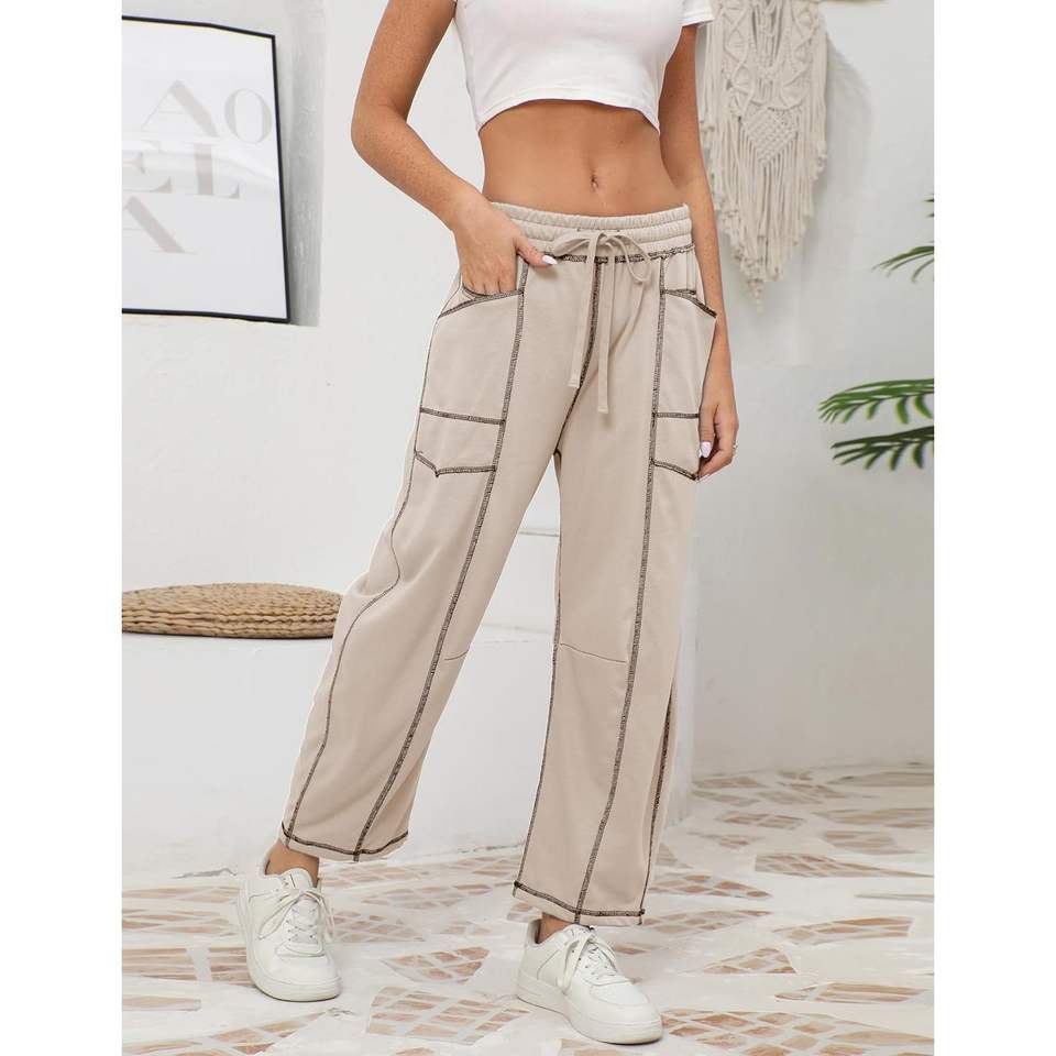 Premium Women's Baggy Barrel Sweatpants Wide Leg Lounge Drawstring with Pockets Mid Waist Breathable and Wrinkled