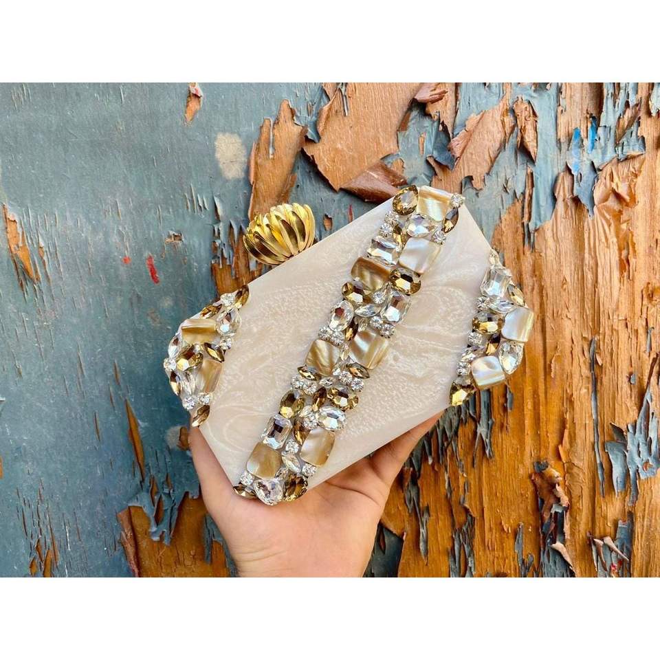 Premium Women's Designer Resin Clutch Premium Party Evening Handbag with Crystal Fashion Accessories