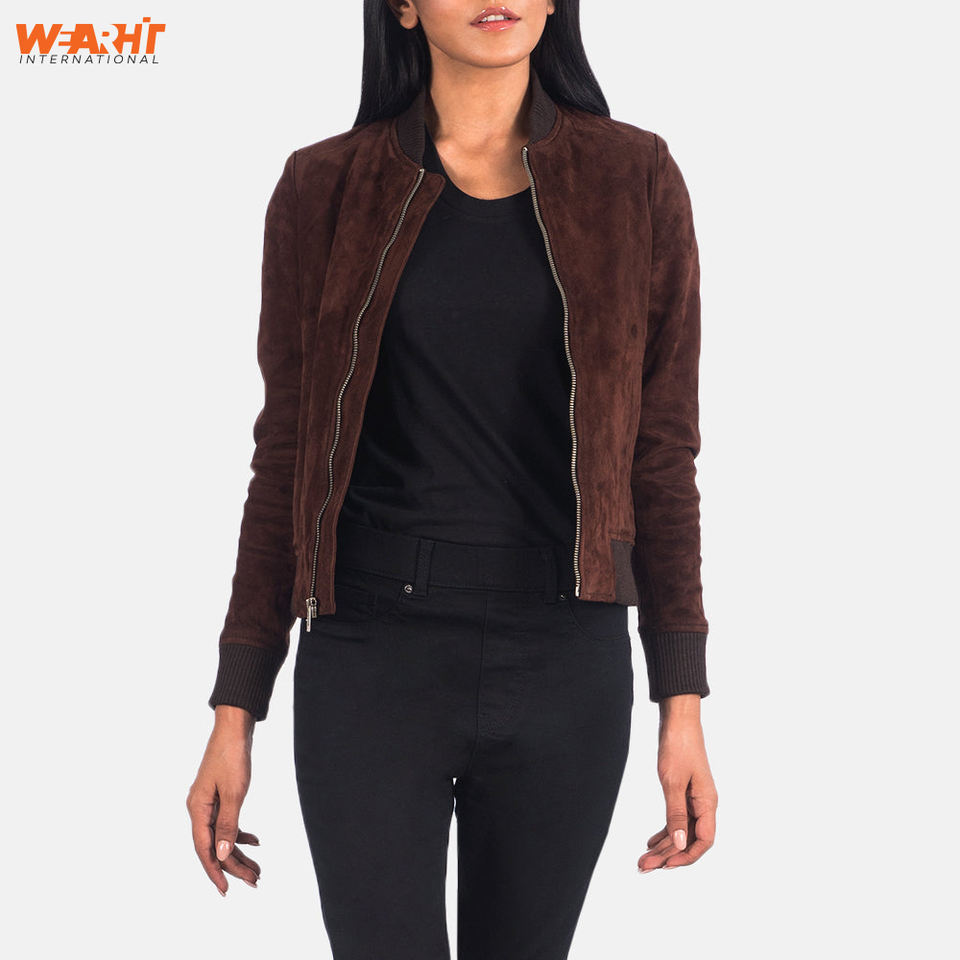 Premium Women's Suede Bomber Jacket Casual Winter Outerwear with Smart Street Style Trendy Warm Slim Fit Genuine Suede Soft Feel