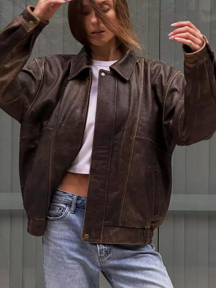 Premium Womens Leather Jacket In Genuine Sheepskin High End Classic Moto Inspiration With Stand Collar And Slim Contoured Cut