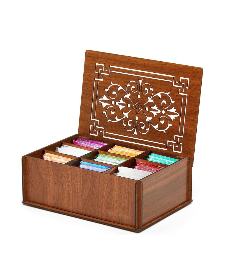 Premium Wood (Hard MDF) Tea Storage Box Organizer (Brown) Eco-Friendly Multi-Functional Decorative Box 9 Compartments
