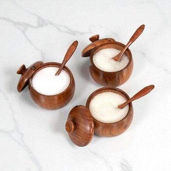 Premium Wood Salt Cellar Wooden Spice Box Bamboo Spice Jars With Lid Spoon Salt Storage for Home Kitchen