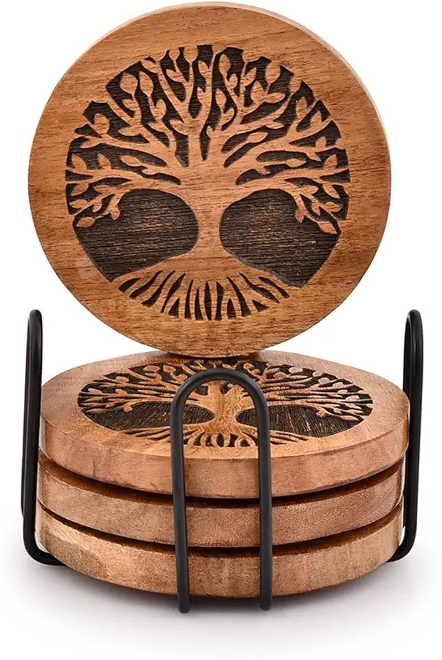 Premium Wooden Coasters Set Durable Rustic Cup Mats for Dining Table Coffee Tea Beer Home Kitchen Bar