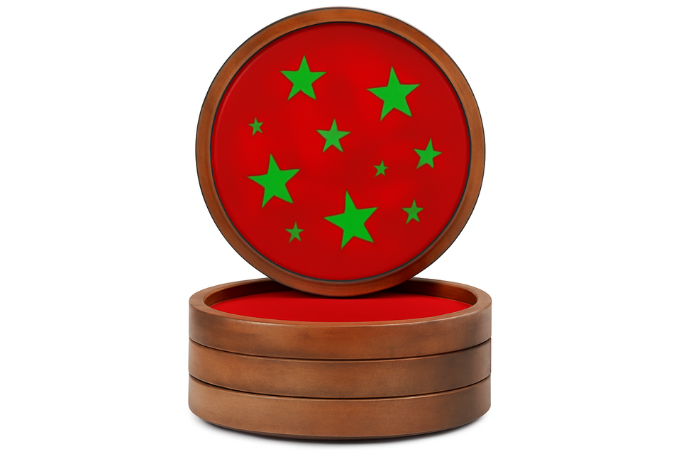 Premium Wooden Coasters with NOEL Design Red Velvet Base Round Shape Drink Cup Holder Set for Christmas Home Decor Gift