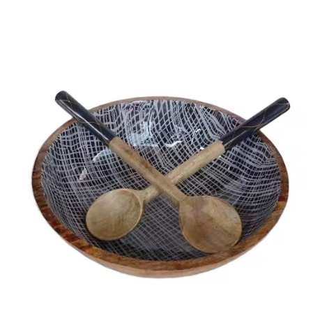Premium Wooden Enamel Printed Bowl Elegant Iftar Snack Bowl India RR ENTERPRISES
