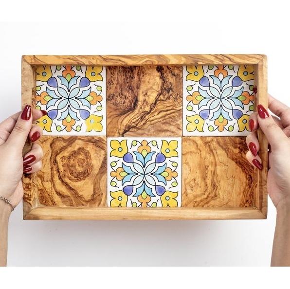 Wooden Enamel Art Deco Serving Tray Home Decor Kitchen Dining Tea Coffee Snacks Premium Handmade Artistic Wedding Diwali