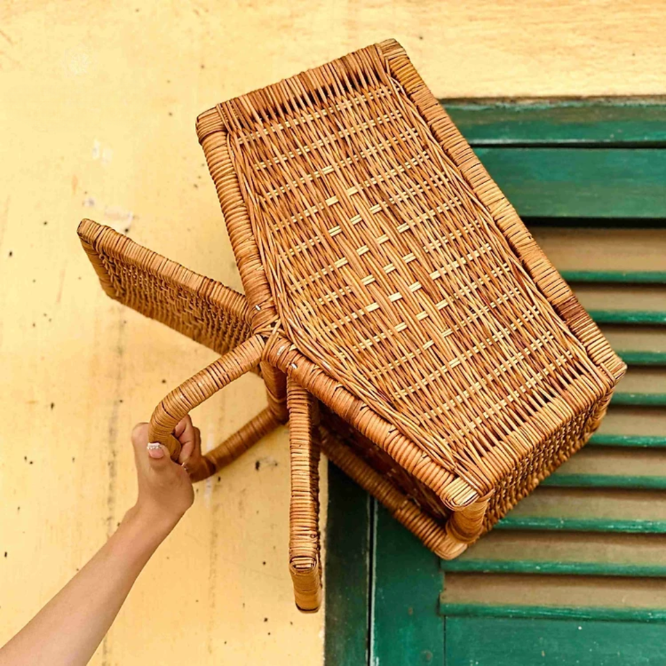 Premium Wooden Frame RATTAN BASKET PICNIC BASKET With Lid From Vietnam Large Wicker Harvest Basket Lightweight Large Capacity