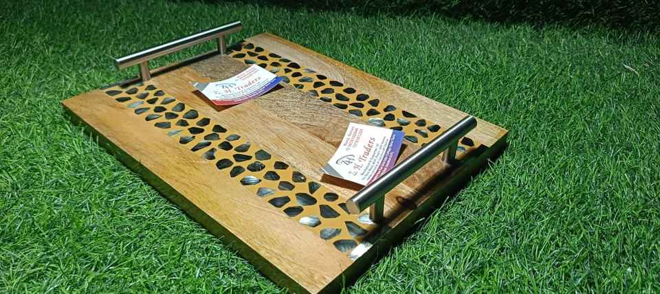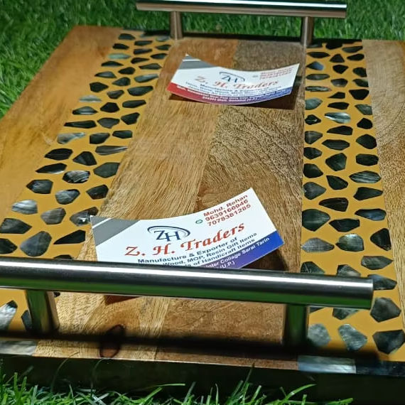 Premium Wooden Handle Mother of Pearl Inlay Tray Luxury Ramadan Mubarak Dessert and Date Serving Dish Eid Mubarak Festive Gift