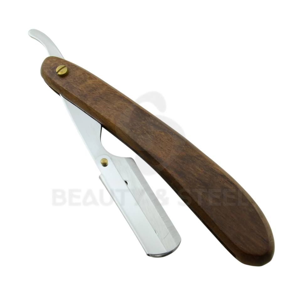 Premium Wooden Handle Shavette Razor Straight Edge Design with Brass Accents for Precision Men Grooming Shaves