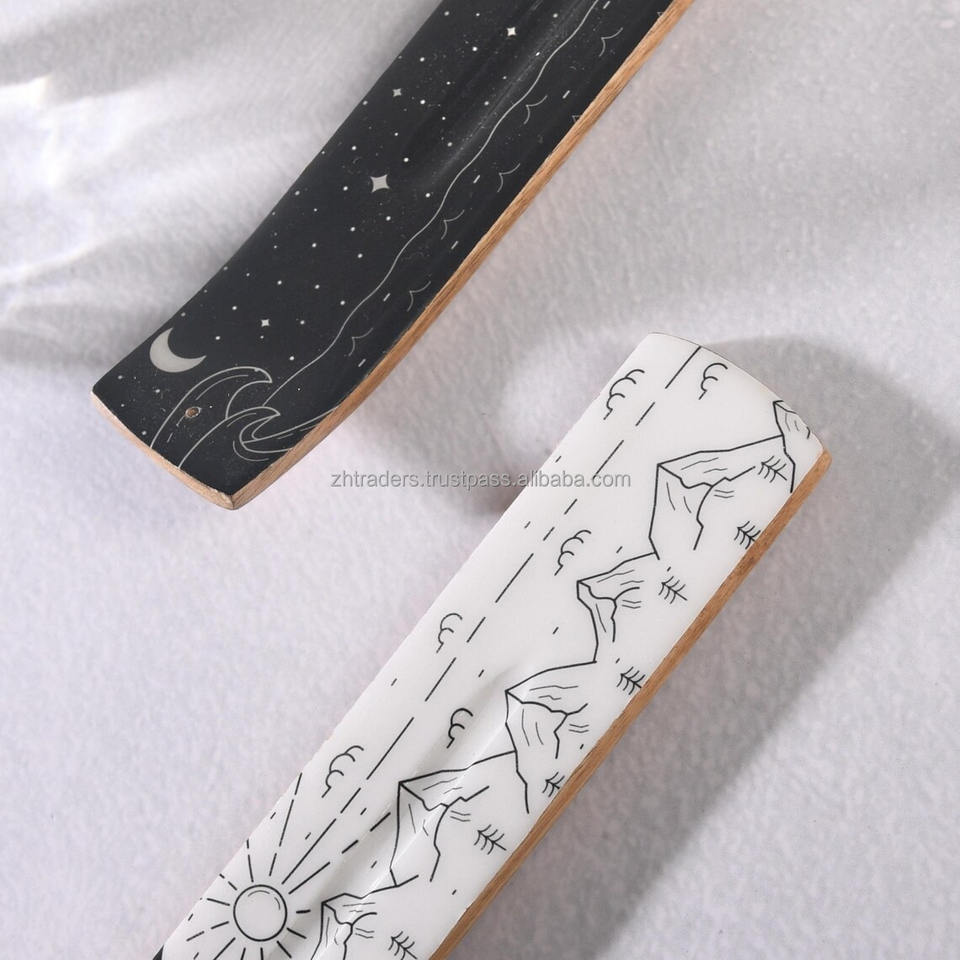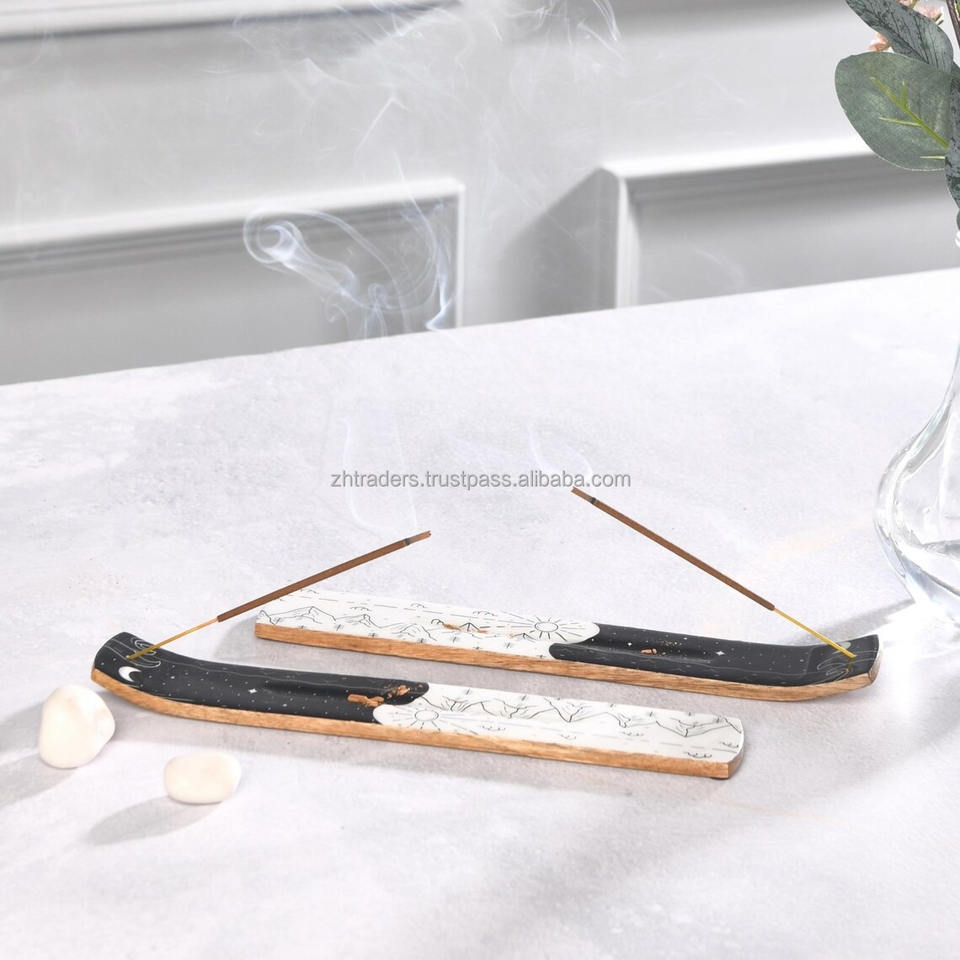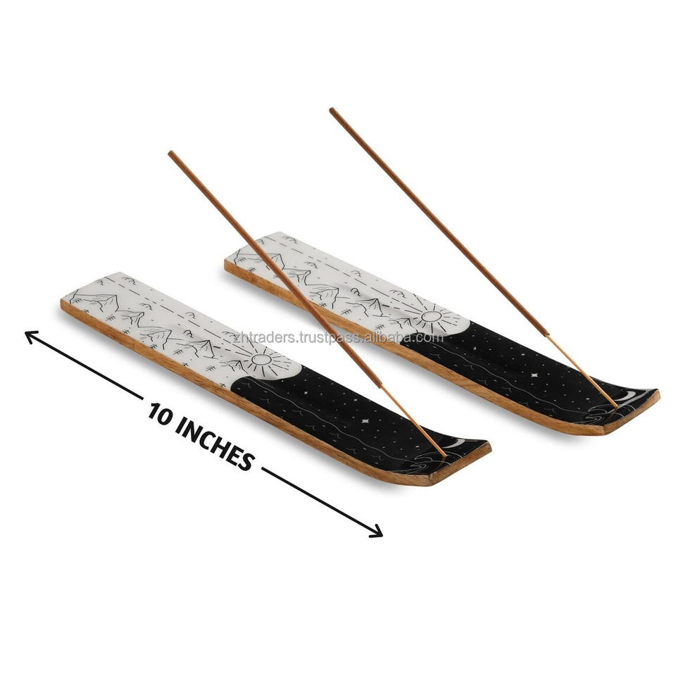 Premium Wooden Incense Stick Stand with enamel printed Unique Handmade Sandalwood Holder for Ramadan, Meditation & Home Styling