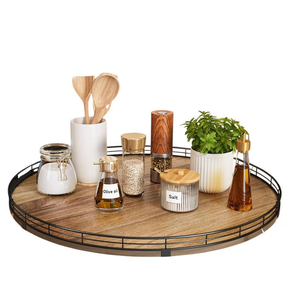Premium Wooden Lazy Susan Turntable Organizer for Kitchen Countertop Spice Rack Pantry Storage Rotating Display Shelf Food Tray