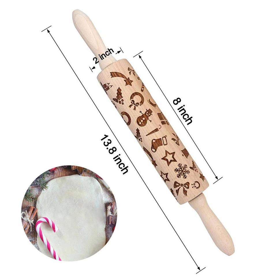 Premium Wooden Rolling Pin with Christmas Design for Holiday Baking Pastry Cookies Cake Pizza Bread And Seasonal Tool From India