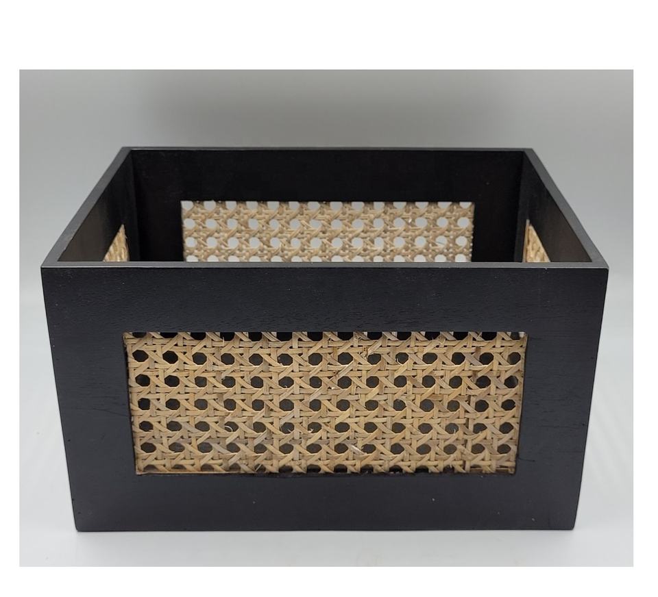 Premium Wooden Storage Crate with Rattan Webbing and Sturdy Rope Handles for Wine, Fruit, and Gift Hampers