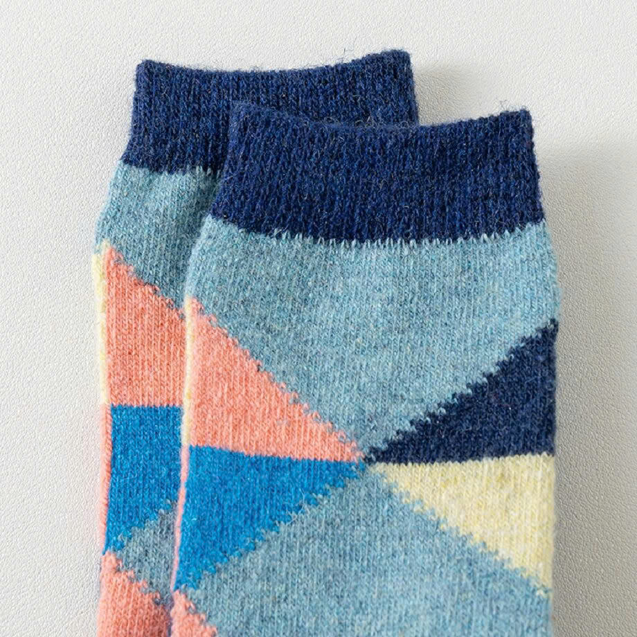 Premium Wool Blends Crew Socks with Geometric Patterns Custom Logo Design Breathable Stylish Casual Socks for Men and Women