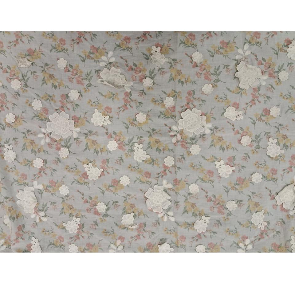 Premium Combed Woven Cotton White Fabric 3D Lace Applique Flowers Floral Print for Girls' Dresses Lightweight Best Price