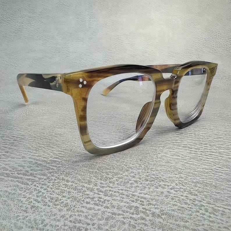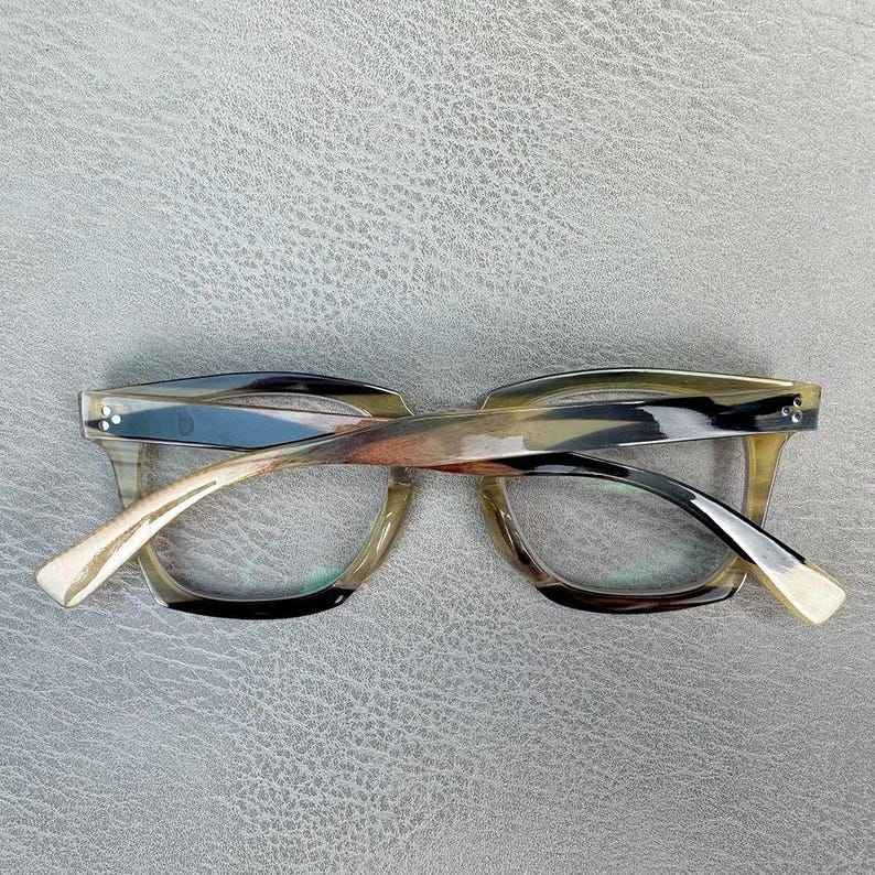 Premium XXL Large Japanese Style Modern Eco-Friendly Buffalo Horn Natural Handmade Sunglass Frames Retro Rivets for Christmas