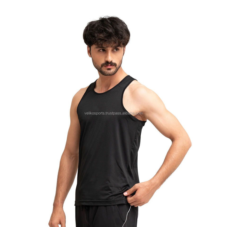 Premium cotton mens gym tank top with dropped armhole cut and sleek pattern ideal for training and sports sessions