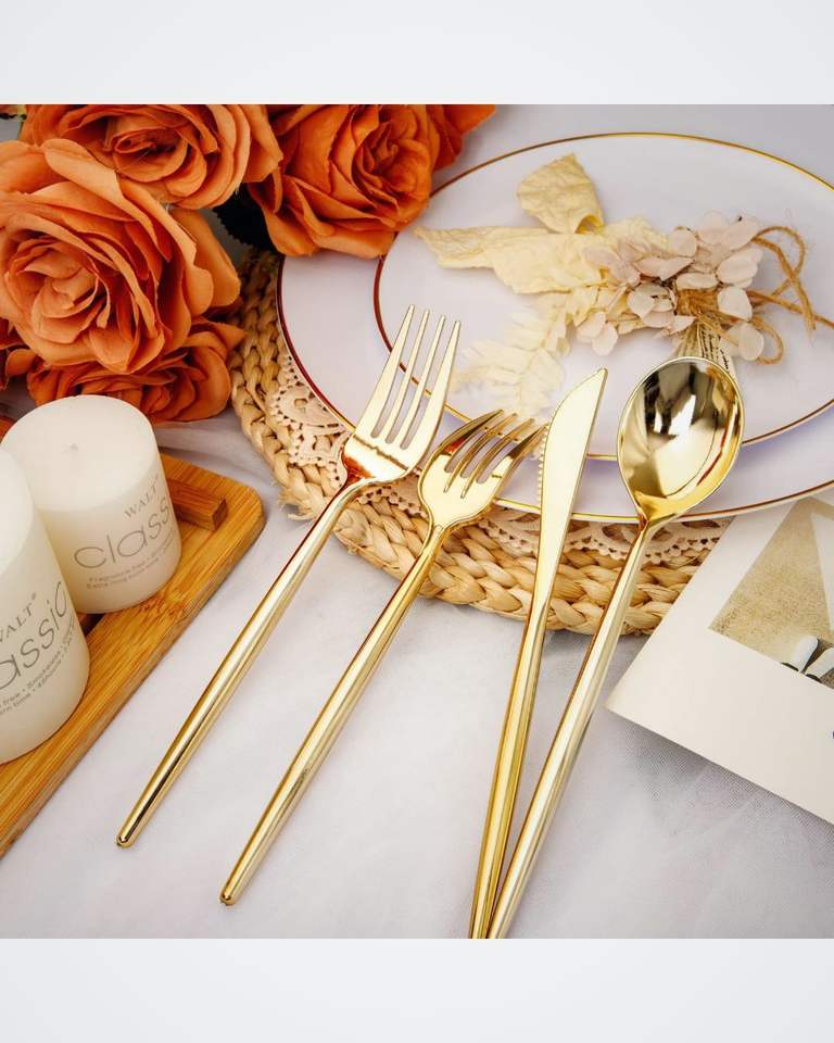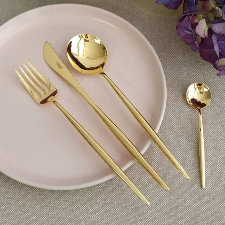 Premium finish GOLDEN cutlery set showcasing polished gold look created for home hotels and elegant restaurants