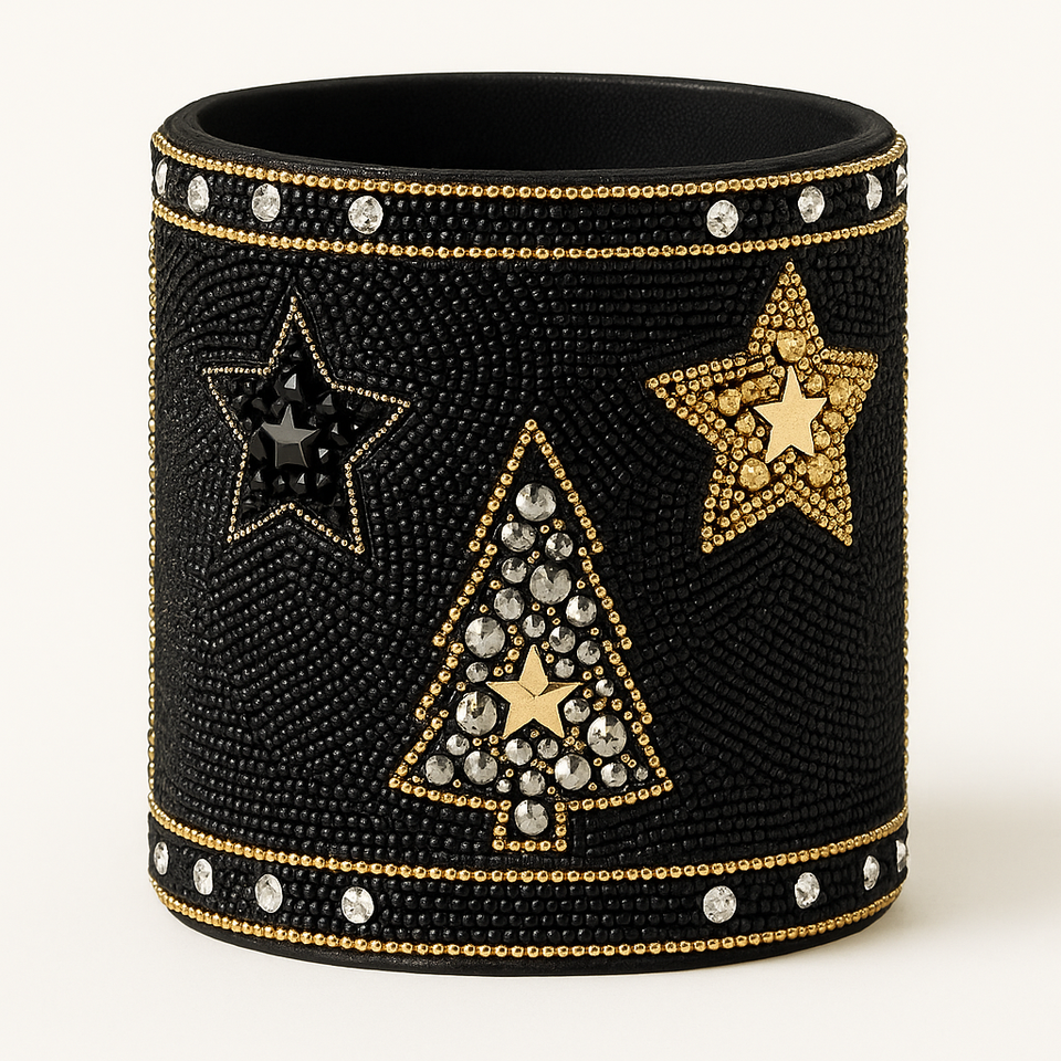 Premium for Canvas Linen High-Density Black Textured Fabric Hand-Beaded Pen Holder Collection Desktop Organizer Custom Holder
