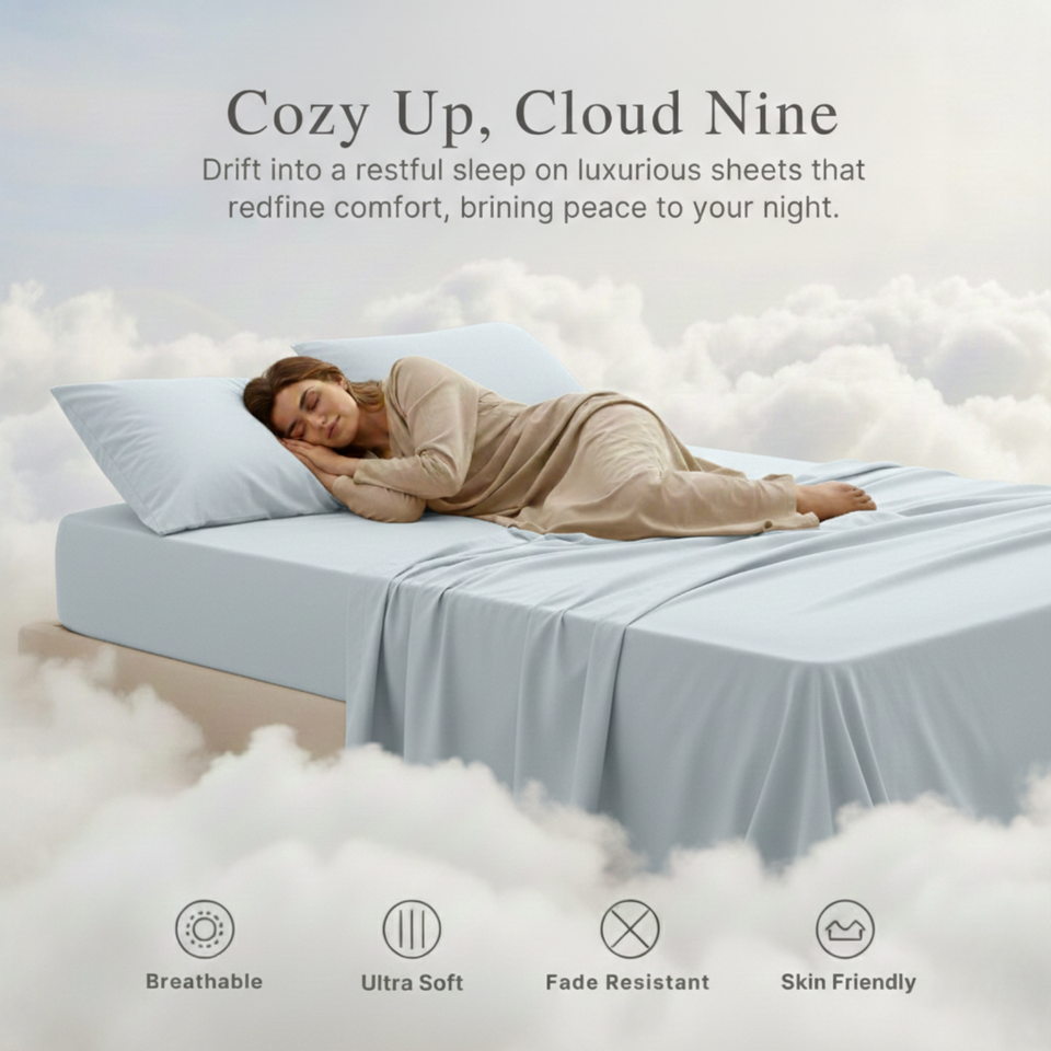 Premium ice Blue Microfiber Double Bedsheet Set with Pillowcases | Hotel Style Premium Bedding | Soft Breathable | 2026