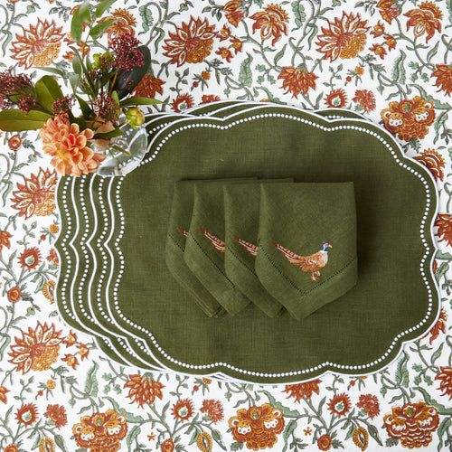 Premium linen table placemats with detailed embroidery work for modern dining table setup home interiors