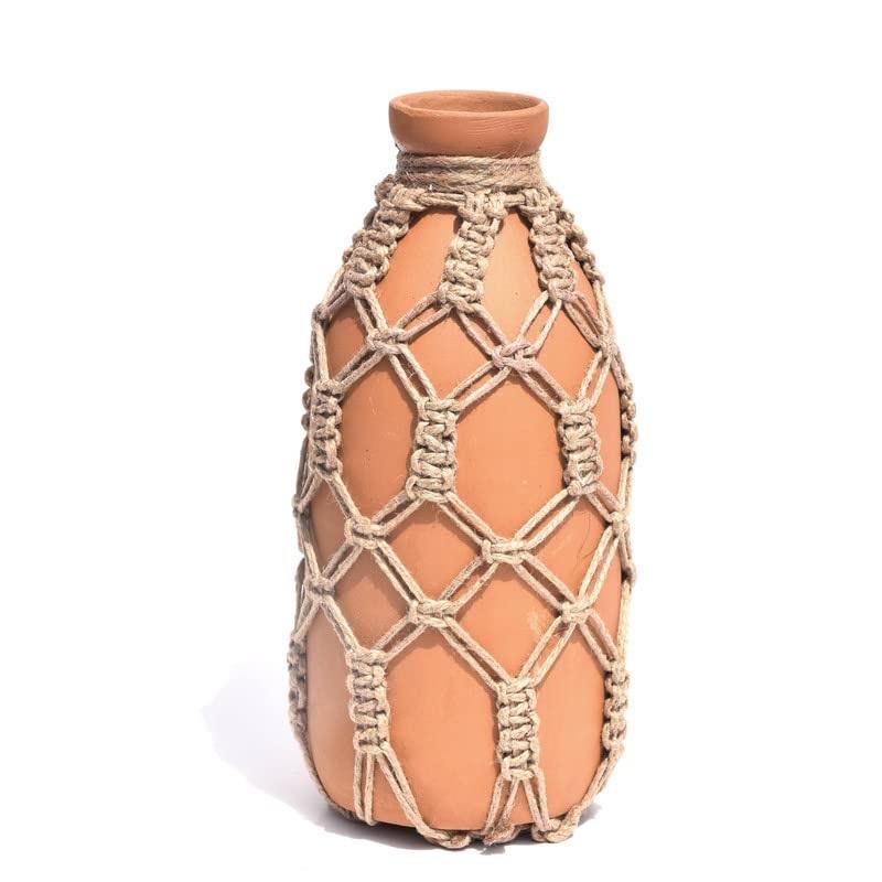 Premium of Blue Hanging Vase With Jute Rope Weaving Flower Vases for Homes and Terrace With Sizes 9.3 X 15.0 X 9.3 Inches