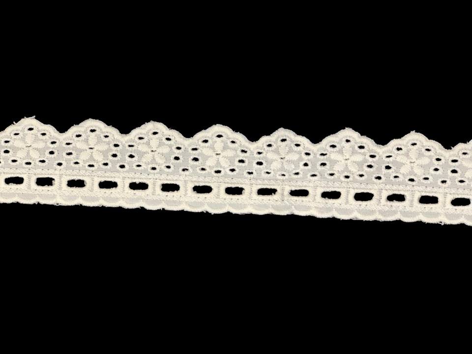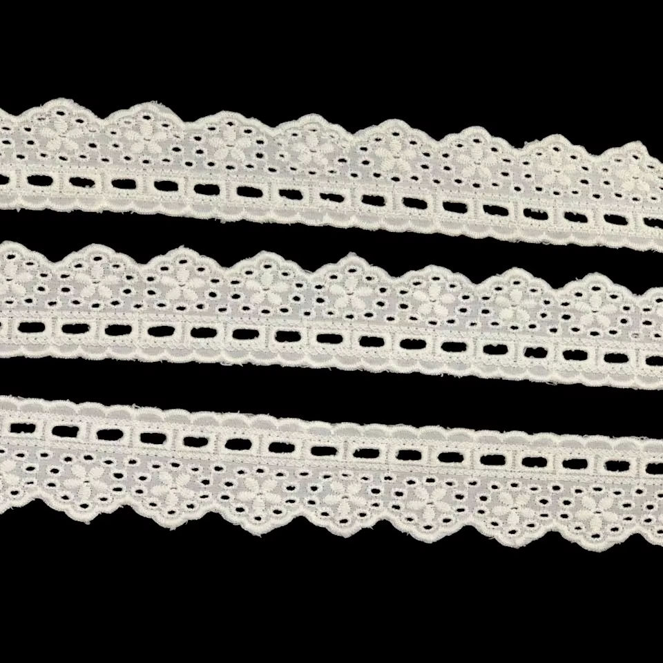 Premium quality 100% Cotton Eco-Friendly Eyelet Scallop Lace Fabric Trim Quick-Dry Breathable Lightweight White
