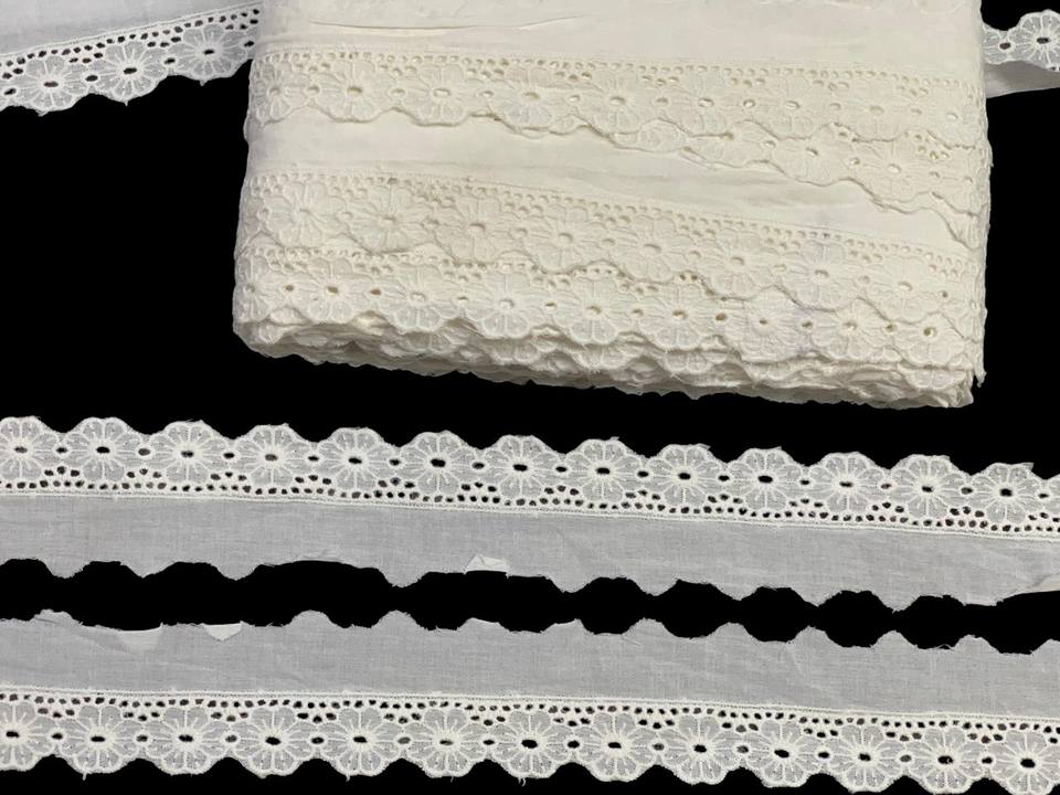 Premium quality Breathable 100% Cotton white Lace Fabric Daisy Floral Scallop White Embroidered Border for Dresses