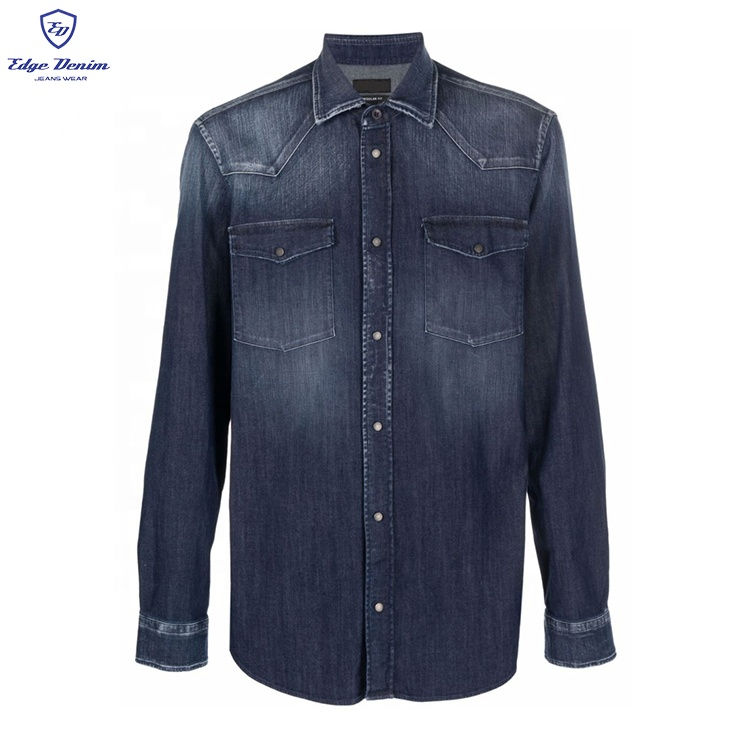 Premium quality men's denim shirt with a unique design, customizable color options, short sleeves, and a trendy vintage appeal