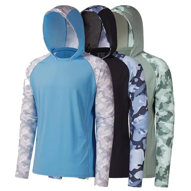 Premium quality wholesale customizable full sleeve hooded full sleeve shirt for men fishing wear top for men