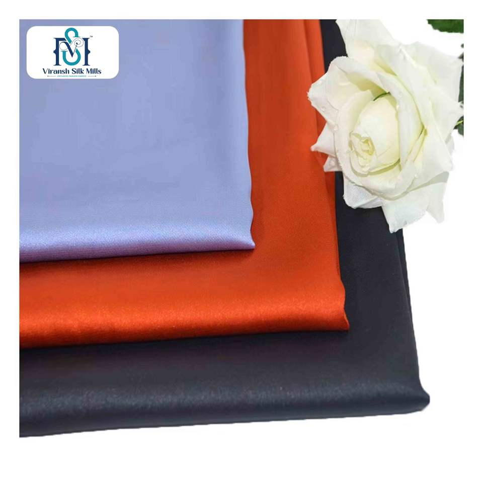 Premium silk satin fabric 100% polyester solid color rolls for fashion dress home decor bedding low MOQ wholesale supplier