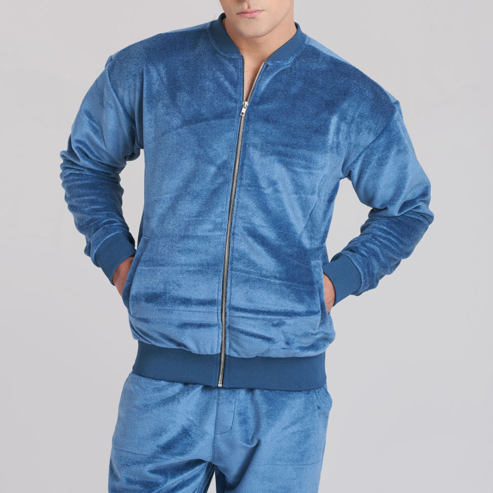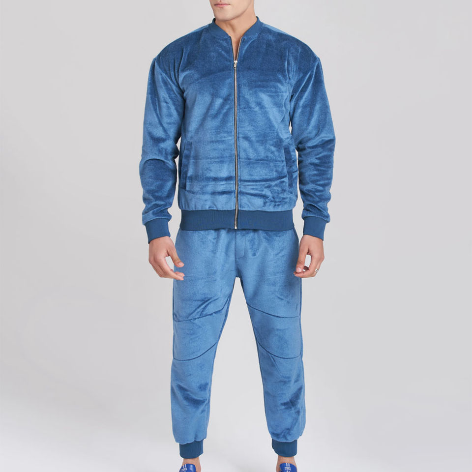 Premium velvet blue men'stracksuit tracksuit for men winter warm casual zip jacket jogger pants set streetwear fashion styles