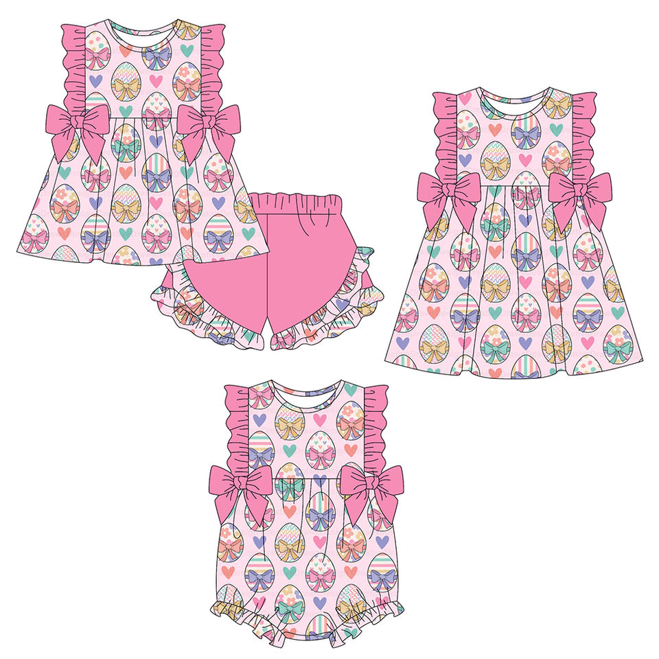 Preorder MOQ 5 Colorful Flowers Eggs Bows Print Holiday Girls Easter Wholesale Sisters Clothing Children New Fashion Boutique